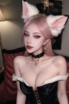 Very detailed CG unified 8K wallpapers,most beautiful artwork in the world,1girll,fox,fox ears,The upper part of the body,Closed_Mouth, Earrings, jewelry, Lips,black lip,eyelashes,jewely,choker necklace,lipstick,black corset,shackle,collars,best qualtiy,yuyao,dress