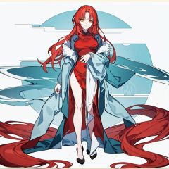 (masterpiece:1.3),(the best quality:1.2),(super fine illustrations:1.2),(Masterpiece),high quality,high detail,(white background:1.2),looking at viewer,(SOLO:1.4),outline,simplebackground,, red hair,very long hair,fire,thighhighs,jewelry,wide sleeves,red eyes,long sleeves,fiery hair,flame,yellow eyes,breasts,chinese clothes,china dress,black dress,parted bangs,messy hair,long hair,