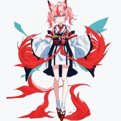 (masterpiece:1.3), (the best quality:1.2), (super fine illustrations:1.2), (Masterpiece), high quality, high detail,((white background:1.2)), looking at viewer, (SOLO:1.4),outline,,simple background,twintails, fox ears, kimono, sakura miko, japanese clothes, streaked hair, red hair, detached sleeves, hair ornament, multicolored hair, animal ears,pink_hair, hair_between_eyes, blue eyes