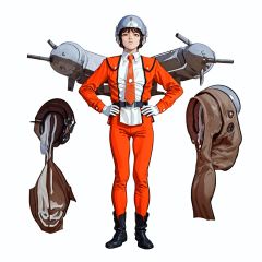 (masterpiece:1.3), (the best quality:1.2), (super fine illustrations:1.2), (Masterpiece), high quality, high detail,((white background:1.2)), looking at viewer, (SOLO:1.4),outline,,simple background, leggings, black gloves, helmet, boots, orange pants,orange jacket, uniform, jacket, belt,military uniform, white shirt, suit, shirt, necktie