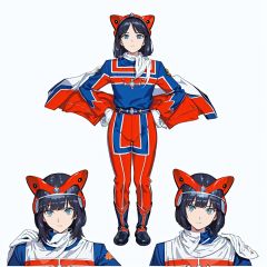 (masterpiece:1.3), (the best quality:1.2), (super fine illustrations:1.2), (Masterpiece), high quality, high detail,((white background:1.2)), looking at viewer, (SOLO:1.4),outline,,simple background, helmet,bodysuit, blue jacket, jacket, neckerchief, boots,military uniform, gloves, military, uniform,helmet