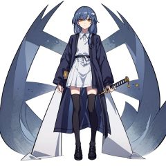 (masterpiece:1.3),(the best quality:1.2),(super fine illustrations:1.2),(Masterpiece),high quality,high detail,(white background:1.2),looking at viewer,(SOLO:1.4),outline,simple background,, black hair,jilin,holding weapon,long sleeves,chinese clothes,sword,thighhighs,weapon,brown eyes,headdress,crown,hair ornament,long hair,bracelet,jewelry,wide sleeves,