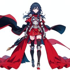 (masterpiece:1.3),(the best quality:1.2),(super fine illustrations:1.2),(Masterpiece),high quality,high detail,(white background:1.2),looking at viewer,(SOLO:1.4),outline,simple background,, pauldrons,thighhighs,breastplate,red cape,red skirt,blue eyes,hair_between_eyes,fu_hua,long hair,shoulder armor,armor, shoulder_armor