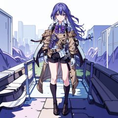 (masterpiece:1.3),(the best quality:1.2),(super fine illustrations:1.2),(Masterpiece),high quality,high detail,(white background:1.2),looking at viewer,(SOLO:1.4),outline,simplebackground,, gloves,thighhighs,shorts,hair ornament,striped bow,jewelry,coat,plaid,collared shirt,necktie,very long hair,long sleeves,multicolored hair,bangs,suspenders,kneehighs,purple bow,white shirt,bowtie,purple bowtie,shirt,jacket,brooch,hair between eyes,