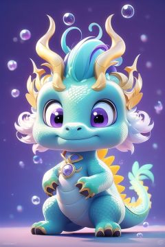 masterpiece,best quality,8K,official art,ultra high res,3dmmd,<lora:3DMMD-v1:1>,bubble mart,1 dragon,black trousers,blue coat,purple body,colorful background,