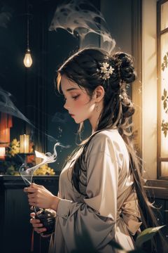 absurdres,incredibly absurdres,reality,realistic,,(solo:1.2), ,,1girl,,full_shot,Cense,smoke,censer