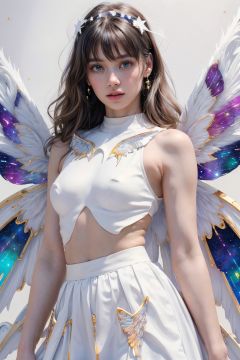 (galaxy adorns colorful wings),(((starry_wings,galaxy wings):1.5)),(Glowing line tattoos),
