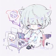 1boy,with glass, upper body,purple electricity,purple aura,purple lightning,[color]+ electricity, black hair,working on computer , short hair, 8k