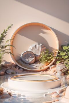 masterpiece,best quality,desert,Round glass material object on the water,next to the grey coffee stone,C4D scene,realistic,advanced sense,simple,gold,highres,original,extremely detailedwallpaper,perfect lighting,(extremely detailed CG:1.2),ultradetail,