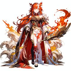 (masterpiece:1.3), (the best quality:1.2), (super fine illustrations:1.2), (Masterpiece), high quality, high detail,(white background:1.2), looking at viewer, (SOLO:1.4),outline,,simple background, white_hair, orange_eyes, streaked_hair, fu hua, orange_hair, red_hair, fire, fiery_hair, hair_between_eyes, multicolored_hair, fu hua\bengluo, fiery_wings