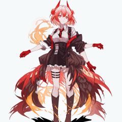 (masterpiece:1.3), (the best quality:1.2), (super fine illustrations:1.2), (Masterpiece), high quality, high detail,((white background:1.2)), looking at viewer, (SOLO:1.4),outline,,simple background,gradient hair,thighhighs,feathers, open clothes, pleated skirt, red ribbon, miniskirt, knee boots, suit, animal ears, red necktie, floating hair, necklace, thigh holster, black skirt, boots, black jacket, black footwear, thighs, collared shirt, thigh strap, pink hair, off shoulder, phoenix, flaming eye, flame, fiery wings, fiery hair, white shirt, necktie, holding gun, skirt, shirt, jacket, holding weapon, gun, black gloves,short hair,hair ornament,red eyes,bangs,hair between eyes,off shoulders,multicolored hair,dress,white hair,jewelry,red hair,long sleeves,gem,streaked hair,1girl, bangs