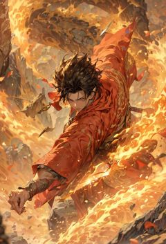 (Masterpiece), (best qualtiy), Cinematic quality,rendering by octane,Ultra-detailed details,1 st place: Ancient Chinese boy,Face of a young man,Detailed portrayal of the face,Perfect facial features,(wave:1.5),Suspended rocks,Rock skin,Splashes of rocks and soil,spatter,erupting,blasts,Particle, Gaze towards the viewer, A cloak that covers the whole body, (Holding a rock knife:1.3),