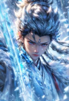 (tmasterpiece), (Best quality at best), Cinematic quality,Rendered by Octane,Ultra-detailed details,1 boy,Face of a young man,Facial detail portrayal,Perfect facial features,(ice crystals in the air:1.5),floating ice crystals,frozen liquid,Icicles,ice axe,staredown, watch audience, (Ancient Chinese Hanfu:1.2), (Armed with an ice sword:1.2),