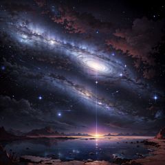 background, scenery, star (sky), no humans, sky, starry sky, space, planet, outdoors, night, night sky, horizon, milky way, galaxy, sun