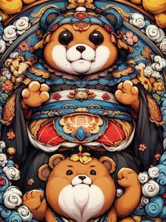 masterpiece,best quality,HDR,8K,<lora:20231102-1698870060263-0006:0.6>,guochao,say,symmetry,teddy_bear,