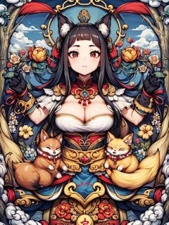 masterpiece,best quality,HDR,8K,guochao,say,symmetry,fox,<lora:20231102-1698870060263-0006:0.6>,bishoujo,