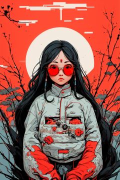 masterpiece,best quality,1girl,8K,HDR,<lora:guochaopingtu4:0.8>,guochaopingtu, behance, lowborn Triplets, Amish Coral, Baby Blue and Gray Browline glasses, Bokeh, digital art, (designed by Alena Aenami:0.9) , Tranquil, Dramatic spotlight, F/1.8