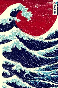 masterpiece,best quality,1DG,8K,<lora:fushihui-000012:0.8>,fushfushihui, waves, no humans, splashing, water, fine art parody, white background, japanese flag, rising sun flag, ocean, Ukiyoe