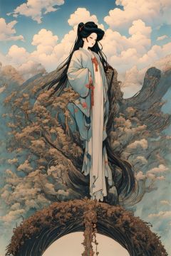 masterpiece,best quality,8K,<lora:fushihui-000012:0.8>,fushihui,Ukiyoe,1girl, (surrealism art designed by Tran Nguyen:1.3) , Concept art, Weird Cloud Strife, Cloud Strife is wearing Welsh T-shirt, Detailed background, Light and shadow plays, 4K
