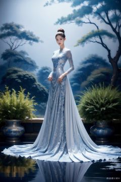 1girl,Metallic Gray china_dress,nature,colorful,dynamic posture,<lora:艺术摄影魅力青蓝:1>,, ,(masterpiece:1.2),(best quality:1.2),Highly detailed,ultra-fine painting,sharp focus,extreme detail description,studio soft light,Vivid Colors,super detailed shadow,