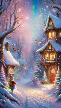 Pass through a mysterious door and come to a Christmas Eve in a different world. In this world, the trees are rainbow-colored, the snowflakes are sparkling crystals, and the air is filled with the sweet aroma of chocolate. A group of elves with colorful wings and feathers hold hands and leave an arc of rainbow in the sky. They evoke the childish dream deep in the hearts of everyone in the world. In this mysterious Christmas wonderland, miracles and fantasy are intertwined, bringing endless joy to people