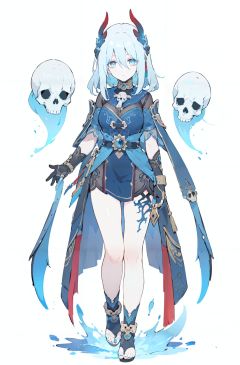 8k, best quality, masterpiece, (ultra-detailed:1.1), (high detailed skin),(full body:1.4), standing, looking at viewer, (solo:1.3),(1girl:1.5),solo,serafuku,lycoris flower,(goat skull:1.),(horror),(gloomy),(blue pigment:1.33),(hollow eyes:1.),(expressionless eyes:1.3),cowboy shot,ghost behind,floating animal skull, <lora:hanya-v100-000027:0.75:lbw=OUTALL>, (hanya, hair ornament:1.1), 1girl, gloves, breasts, toenail polish,makeup,<lora:EnvyBetterHands LoCon_beta2 辅助:0.55>, ( good hands, nice hands:0.5),(beautiful_face), ((intricate_detail)), clear face,((finely_detailed)), fine_fabric_emphasis,((glossy)), full_shot,