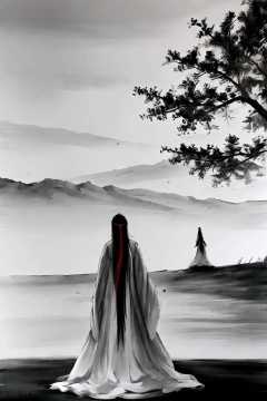 1girl,tree,<lora:ink_xiakexing_v1_512:0.8>,1boy,