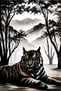1tiger,tree,<lora:ink_xiakexing_v2_128:0.8>,