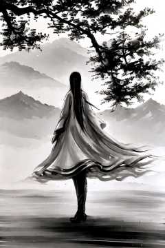 1girl,tree,<lora:ink_xiakexing_v2_128:0.8>,1boy,