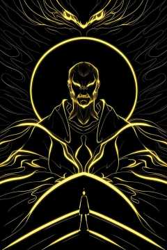 a man standing in front of a projection of immortal,halo,<lora:eastern_mythology_v1_512_preview:0.6>,