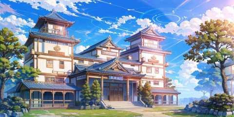 (masterpiece:1.2),best quality,blue archive background,no humans, scenery, sky, outdoors, cloud, building, blue sky, day, english text, tree, japan, sign<lora:blue archive background-000018:0.8>,