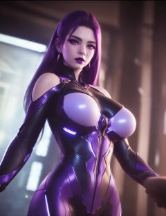 ultra realistic 8k cg, picture-perfect face, flawless, clean, masterpiece, professional artwork, famous artwork, cinematic lighting, cinematic bloom, perfect face, beautiful face, fantasy, dreamlike, unreal, science fiction, huge breasts, beautiful clothes, lace,((,1girl, pov,))  <lora:DA_NingHongYeHacker:0.6>(((letterboxed, 1girl, bodysuit, breasts, solo, purple_hair, earrings, purple_lips, long_hair, makeup, glowing)))