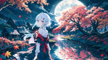 (masterpiece:1.5), (illustration:1.5), (beauty:1.5), (perfect details:1.5), (clear background:1.25), (depth of field:0.7), (moonlight:1.5), (long road:1.15), (flower), (life), (autumn), (wind), (red leaves), (dark river), (peaceful mind), (deep thoughts), (reflection), (clear moon), (coolness), (autumn night), (chirping insects), (white steps), (red dewdrops), (parting), (fallen osmanthus flowers), (sorrow), (blowing wind), (yellow leaves), (drunken beauty), (moonlit tower), (clear stream), (transience), (tears), (reflection).