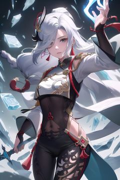 shenhedef, 1girl, solo, masterpiece, best_quality, (spear in left hand:1.5),(chanting a spell:1.5), Closed mouth, (gloom:1.4), (flowing ice scroll:1.3), (medium chest:1.2),Daofa Rune