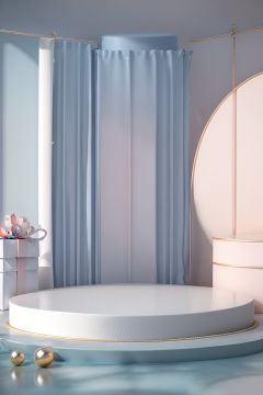 masterpiece,best quality,c4dzhantai\(zhantai\),Round column table in the water,blue sky,in the interior,there are gift boxes,water reflections,plants,curtains,spheres,c4d,OC renderer,Redshift renderer,3D texture,strong contrast,bright colors,studio lighting,high resolution,high quality,8K,<lora:c4dzhantai-000006:0.8>,