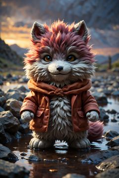 maorong fengge,unity 8k wallpaper,best quality,chibi,(worgen:1.3),masterpiece,(photorealistic:1.4),cloudy sky,cloud,standing,chanpingtu,sunlight,(looking at viewer:1.2),(ultra detailed:1.3),light rays,luozilan,flower,looking at viewer,<lora:调亮度-2~2 add_brightness:0.6>,full body,scenery,cloud,sky,day,flower,outdoors,mountain,ocean wave,flowing water,<lora:maorongfengge:0.9>,