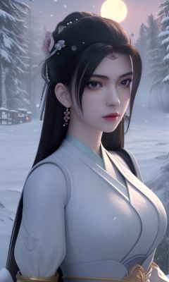 (,1girl, ,best quality, )<lora:336-DA-仙武传-楚萱儿:0.8>,, ,masterpiece, (( , )),, realistic,science fiction,mole, ultra realistic 8k cg, ,tamari \(flawless\),     ,outdoors, snow, snowing, snow on head, sun,sunset,sunlight,moonlight,full moon, red moon,  crescent moon,  crescent rose,  black rose,       (()), (),