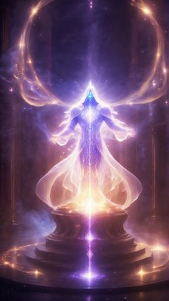 (Concept) (Special Effects) (Light Effect Particles) (Rune, Magic) (Huge Suspension Energy: 1.5) (Transparent Art) The scholar's whims guide the blooming of magic. The energy condensed into a dreamlike halo around him, gradually forming a huge phantom beast. Translucent and dazzling, this phantom seems to be a guardian in the magical world, brought to life by the power unleashed by the scholar.