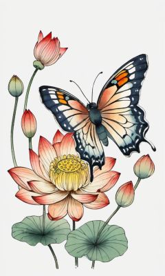 butterfly,lotus,chinese meticulous ink,illustration,white background ,centered,completed<lora:newchinese-1122-1:1>