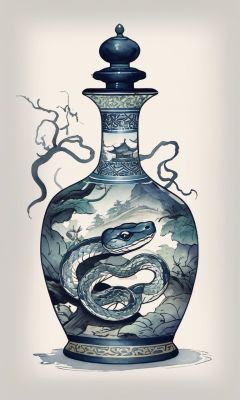 Poison bottle containing a small snake,chinese meticulous ink,illustration,white background ,centered,completed<lora:newchinese-1122-1:1>