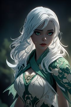 an painting in a style of oriental painting, in the style of matte painting, layered and atmospheric landscapes, rich and immersive, quiet contemplation, dark white and green, history painting, zen-inspired, grandeur of scale,highly detailed, dynamic, cinematic, stunning, realistic lighting and shading, vivid, vibrant, 8k,octane render, unreal engine, very detailed, concept art, realistic, Cry engine, wide shot,2girl,very long hair,white hair,(upper body:1.5),