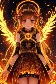 Best quality, stunning, beautiful golden eyes, fine details, depth of field, extremely detailed CG unified 8k wallpaper, (1 girl: 1.5), lava background, volcano, masterpiece, splashing details, beautiful details of magma, cosmic eye, shock, (fidelity: 0.5), such as flowing magma's flame wings, original, children's, (masterpiece)