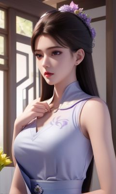 (,1girl, ,best quality, )<lora:337-DA-仙武传-姬凝霜:0.6>,, ,masterpiece, (( , )),, realistic,science fiction,mole, ultra realistic 8k cg, ,tamari \(flawless\),     ,jasmine \(flower\),  purple flower,       (()), (),