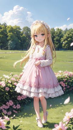(blonde hair),green eyes,loli,(kid, child:1),long hair,pointy ears,