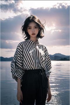 Picture a vast grassland where a girl stands,her expression emotionless,eyes fixed on the horizon where a storm brews under a gloomy sky. The strong winds set her hair into a wild dance,adding dynamism to the somber scene. The distant storm seems to mirror her inner turmoil,creating a narrative that's haunting yet beautiful. As the storm draws nearer,one wonders about the thoughts swirling in her mind. This photo,captured in the style of award-winning photographer Yousuf Karsh with a Hasselblad H6D-400c and a 90mm lens,features dramatic and cinematic lighting. The image is in 8K,ultra-HD,super-resolution,offering a glimpse into a moment of intense emotion and natural power,Film Photography,Wuqiii,Wumag,Black stripe