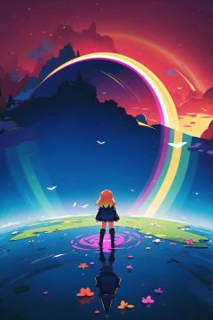 absurdres,incredibly absurdres,reality,realistic,,(solo:1.2),1girl,full_shot,,zgct color,Energetic girl, MG_ip,rainbow,Bifrost,Landscape wallpaper style