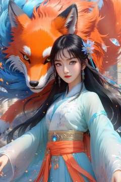 Anime style, (masterpiece: 1.3), best quality, animation works, 1girl, solo, long hair, bangs, hanfu, black hair, wide sleeve flowing fairy skirt, (Firefox), photos, 8k, complex, highly detailed, majestic, digital photography, broken glass, (fine and delicate beautiful eyes: 1.2), hdr, lifelike, high-definition, animation style, key vision, vibrant, studio animation, highly detailed,,<lora:蔚蓝动物:0.7>