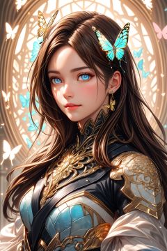 8k portrait of beautiful cyborg with brown hair,intricate,elegant,highly detailed,majestic,digital photography,art by artgerm and ruan jia and greg rutkowski surreal painting gold butterfly filigree,broken glass,(masterpiece, sidelighting, finely detailed beautiful eyes:1.2),hdr,(detailed background window to a new dimension, plants and flowers:0.7),infinity,infinite symbol,<lora:Add More Details_v1.0:0.5>,
