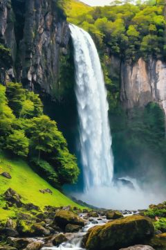 scenery, tree, nature, grass, waterfall, forest, rock, plant, mountain, outdoors, day, bush, no humans