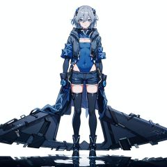 (masterpiece:1.3),(the best quality:1.2),(super fine illustrations:1.2),(Masterpiece),high quality,high detail,(white background:1.2),looking at viewer,(SOLO:1.4),outline,simple background,<lora:符华-小古董-3.0:0.8>, hairband,hoodie,cleavage,leotard under clothes,blue legwear,open clothes,belt,boots,black shorts,hood jacket,black legwear,black footwear,leotard,hair ornament,elbow gloves,black leotard,logo,jacket,bangs,black gloves,hair between eyes,fu hua,blue eyes,gloves,long hair,thighhighs,boots,